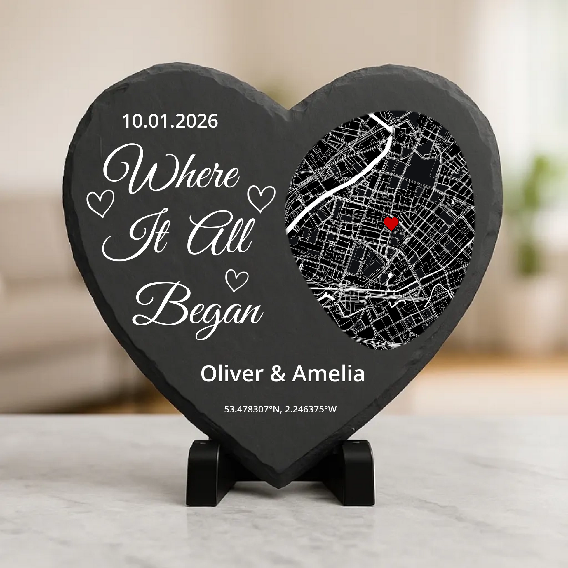 Where it all began - Personalised slate heart (20x20cm)