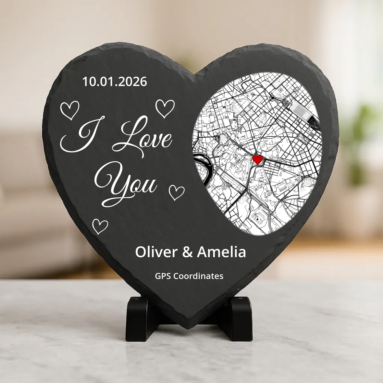 💎 Natural Stone: Premium slate heart with a unique and refined texture.